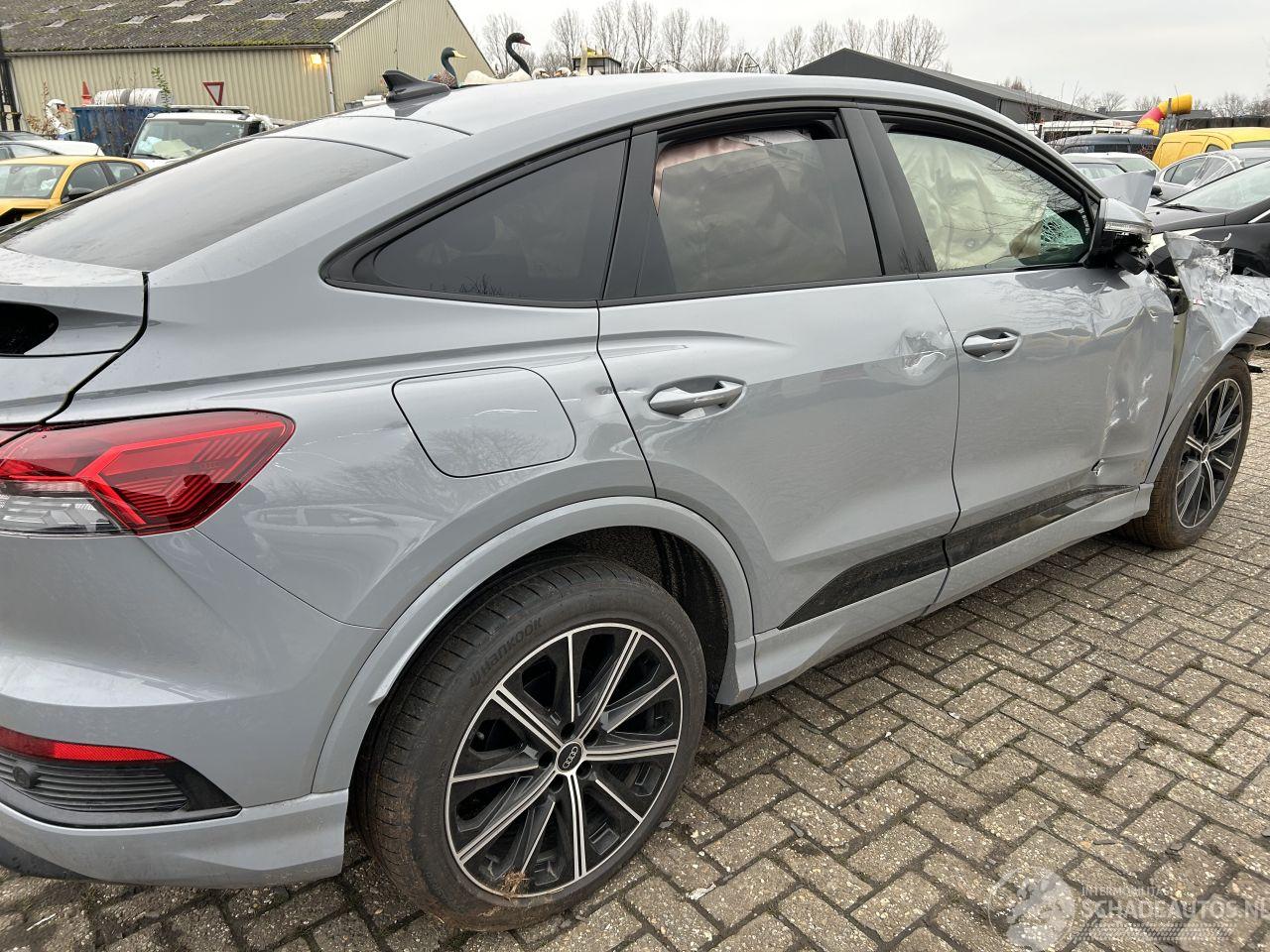 Splinter nieuwe Audi Q4 Sportback e-Tron 45 Quattro met voorschade en een lichte R zijschade.