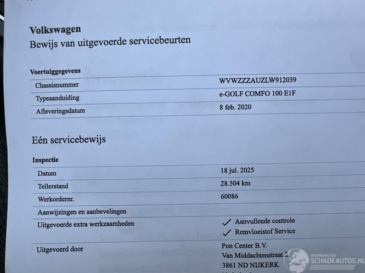 Scherpe meeneemprijs - BTW voertuig - 1x laadkabel erbij - Deze Volkswagen e-Golf E-DITION 5drs komt uit 2020 en kostte toen € 34.544 euro. Deze originele Nederlandse personenauto staat sinds 2020 op kenteken