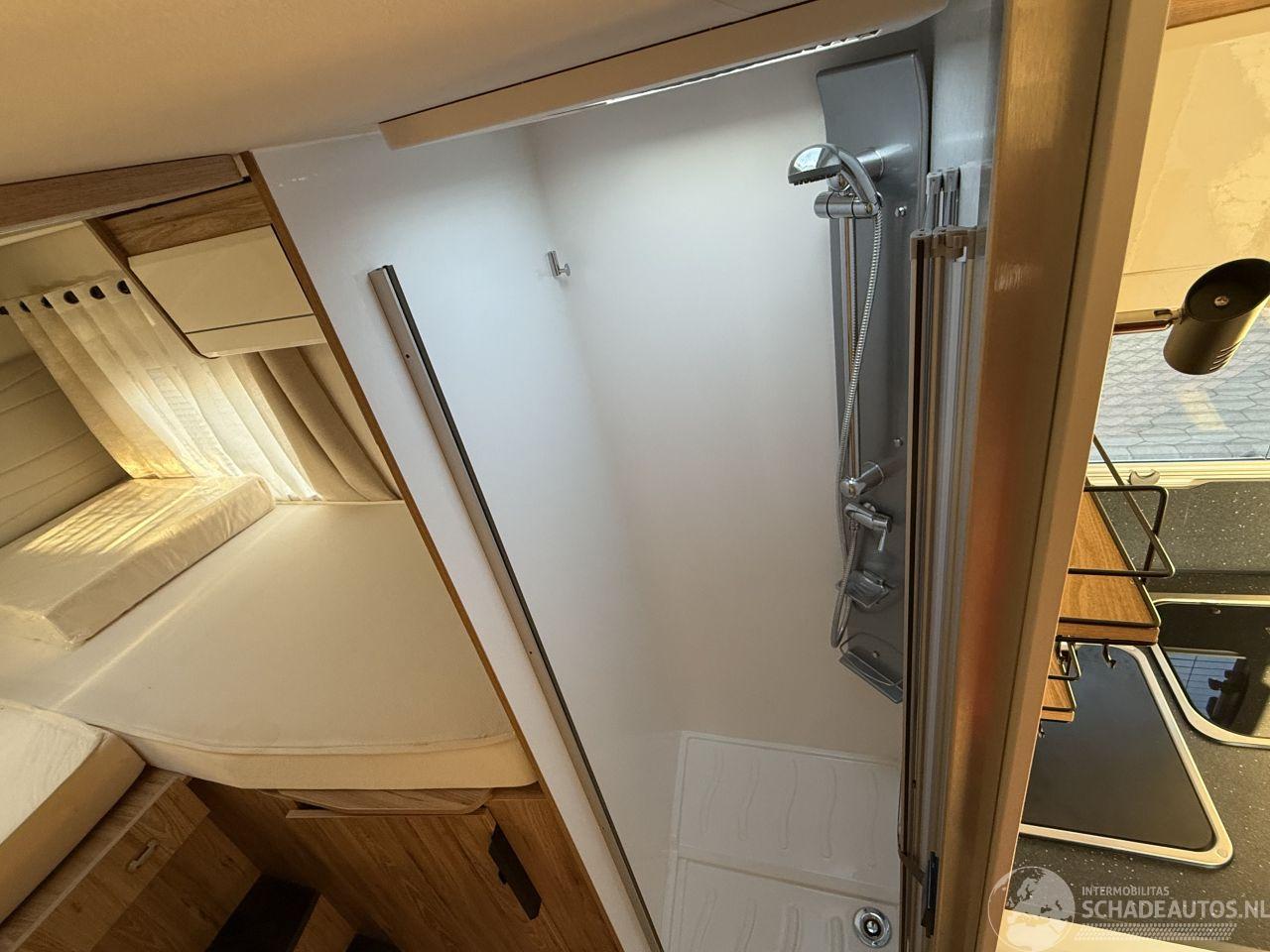 badkamer en slaapgedeelte. Lengte: 699 cm Breedte: ca. 230 cm Hoogte: ca. 285 cm Zitplaatsen: 4 (tot 5 bij maaltijd) Slaapplaatsen: Tot 4 personen Motor: Fiat 2