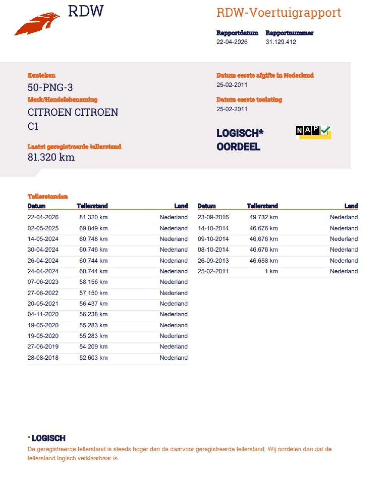 Verificación del kilometraje (NAP)