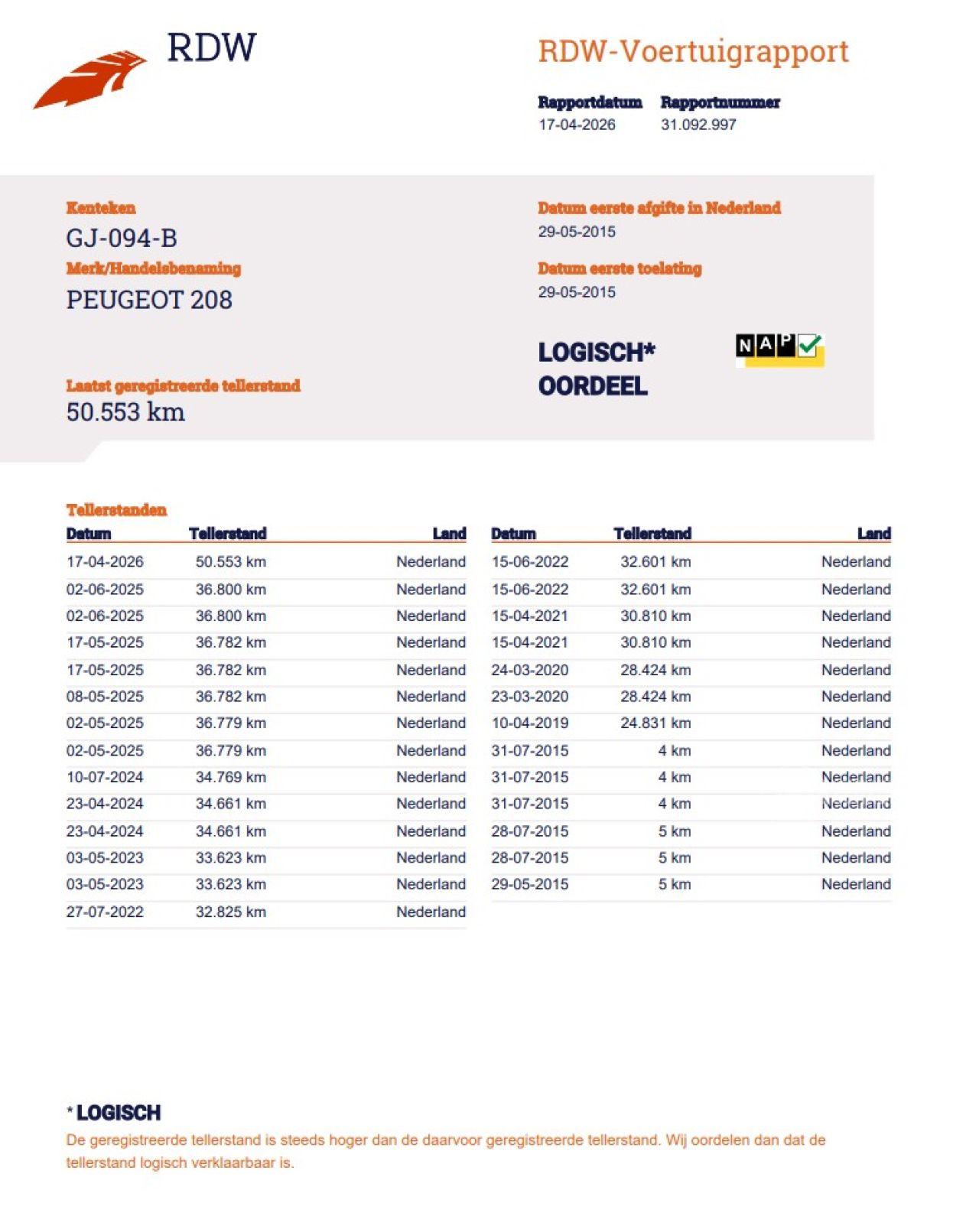 Verificación del kilometraje (NAP)